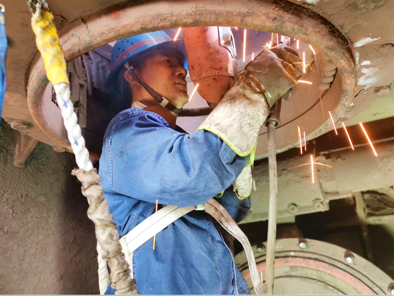 在现场,钳工刘建军绑好安全带,快速进入到不足四平方米的阀箱开始受限空间作业,他认真查看着料斗的每一处刷槽现象,接过精细制作的10公分六棱钢,一点一点将六棱钢卡槽焊接牢固,一根,两根,三根……伴随着六棱钢越来越多,刘建军头上的汗水不断涌出,流进眼睛里 太阳成集团官方版,只见他用袖口简单抹了一把汗,又接着检查冲刷口……一干就是20多分钟。