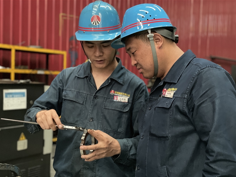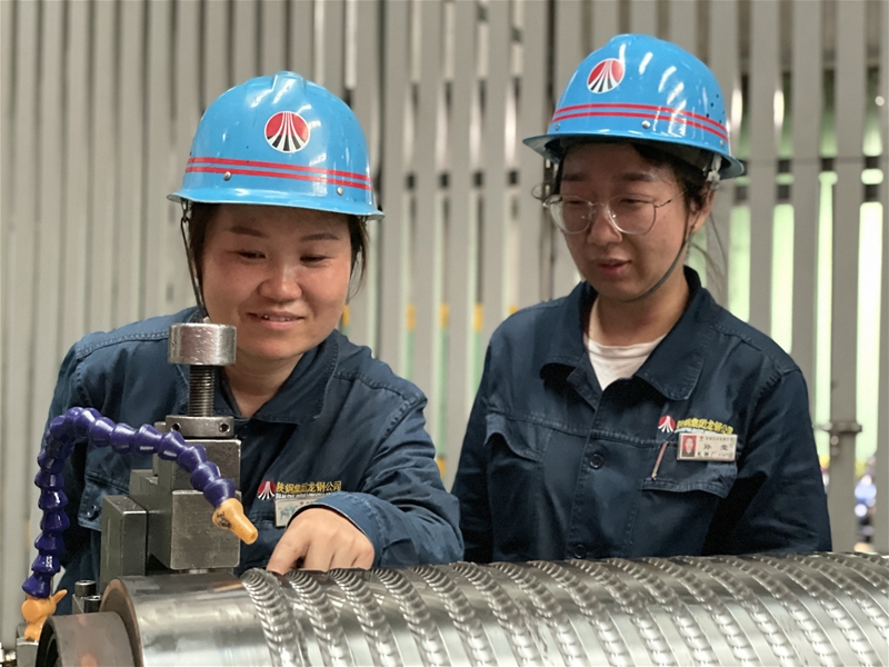 一台铣床前 太阳集团app,张华师徒俩正目不转睛地盯着在机床上转动的轧辊,原来轧槽出现问题,她们正在想办法解决,只见一人指挥,一人操作,协同配合,打起手电筒一点一点“扫描”月牙槽表面质量,一次,两次……不停地尝试,她们目光专注,在一丝一毫的较量下,终于成功补救一个废槽,此时,通红的面颊和汗湿的工作服,正是她们认真工作的真实写照,她们用实际行动演绎了一场热浪滚滚中的“降本记”。