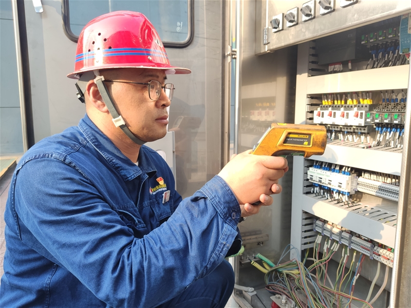 “在暑期高温天气,针对负荷大的变压器 太阳集团app,变频器,电缆隧道,要增加点检频次,严格按照设备三级点检标准,记录设备运行参数及温度,及时排查隐患并整改,”该单位电气党支部书记任鹏带队逐一检查区域设备。