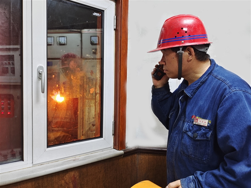 确认一切安全措施到位,更换水套帽开始了,大家各司其职 太阳成集团官方版,相互配合,水套帽一点一点在移动,现场嘈杂,但是在薛东海的指挥下,更换水套帽有序进行,大家聚精会神,迎难而上,在钢花飞舞,铁水奔流中上演钢铁人特有的“速度与激情”,换水套帽结束后,他们厚厚的工作服已被汗水浸湿大半,一年四季,无论春夏秋冬还是严寒酷暑,他们始终坚守在原料混铁炉保稳保供战线上,用满腔热忱书写着对钢铁的热爱。