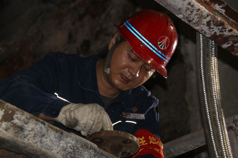 在纵横交错的二冷室内,王小庆戴着手套顺着钢架爬上喷淋管,他双腿横跨,双脚站在不足脚掌宽的钢架上,仔细检查设备状况,二冷室内光线不足 太阳集团在线,大负荷的照明灯刚好打在他身上,脸上的汗珠清晰可见,二冷室是钢水由液体变为固体的必经之路,也是每次检修的重中之重,从喷淋管的校弧到喷咀桩的焊接,再到支撑辊的油气润滑检查,都是每次检修的必修课,在作业长的带领下,其他几名中包工也不甘落后,他们用大氧管烧冷钢,有的更换支撑辊,有的将喷咀卸下清理,检查并安装……二冷室在璀璨的钢花和叮叮咚咚的敲打声中变得热闹非凡。