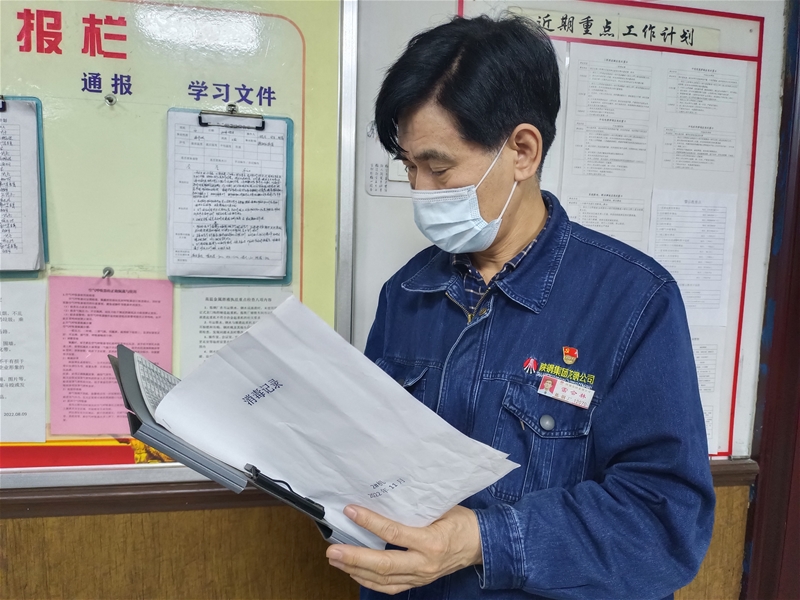 11月24日凌晨四点 太阳集团app,许杰还在办公室打电话询问居住在禹锦园,林馨园两个小区职工的具体情况,然后一一认真记录在登记表上,一个个电话,一个个记录,这项复杂而繁重的任务,许杰在两个小时内完成,并报送至上级疫情防控联络员处,这一项工作完成后还没缓口气,他又戴上安全帽奔赴生产现场,督促夜班班长一定要做好职工思想工作,并引导职工正确佩戴口罩,同时,他还对各区域的疫情防控物品及消杀记录等进行清点检查,及时为各区域补足消杀物品,从严从实抓好疫情防控工作。