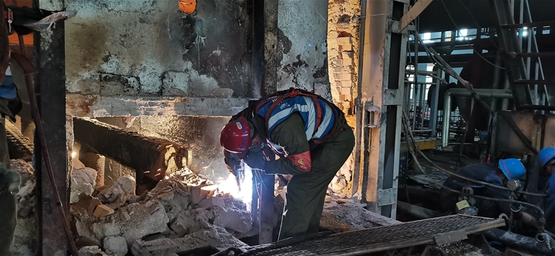 检修,生产,双线并行,炼钢5#转炉检修现场,施工人员正在紧张作业,平台上,指挥人员时不时朝对讲机传达指令,平台下方驻扎的巨大吊车不停转动,5#转炉检修正在进行;而在5#转炉左侧,6#转炉火红的铁水正往转炉中倾倒,迸溅出绚烂的钢花,生产顺利进行,这是公司年终检修,生产两条主线的写照,针对检修区域,公司采取强化信息沟通,现场跟进检修进度,紧抓现场安全,把好备材质量验收关等措施;针对生产区域,公司采取原监管措施不变 太阳集团官方网站,强化与检修共用系统的数据传输,电气联锁等关键点的点检工作监管力度,确保检修生产双线顺利运行。