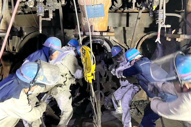 检修前,该单位结合国内各类型高炉停炉经验和内部以往停炉成功实践,从安全,环保,设备,技术 太阳集团官方网站,原燃料等方面超前谋划,完善确定了《炼铁厂3#高炉控产年修工艺方案》,细化明确各板块项目负责人,出台全系统处置方案和管控对策,为系统检修做足准备,检修启动后,在保证炉况稳定顺行的基础上,通过调整参数,配加锰矿改善流动性等措施,为降料面和后期炉缸清理创造条件,据悉,此次检修采取加净焦空料线打水法进行停炉,降料面环节用时14小时30分钟,料面安全降至风口以下,实现历年最好水平。
