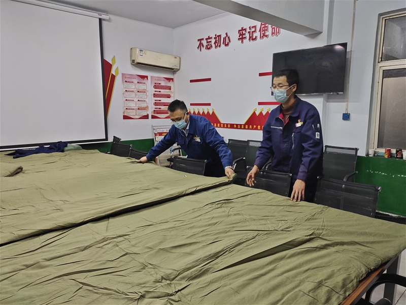 最大的温暖莫过于守望相助,该单位党员干部充分发挥模范带头作用,在前期床位紧缺的情况下,他们就地取材,用一捆捆布袋,一张张桌椅完美拼出了一个个床铺;被褥不够,他们通过自筹 太阳成集团官方版,上报公司统一购买等方式,第一时间将被褥枕头发放到各临时休息点,让职工住有所居,居有所安。