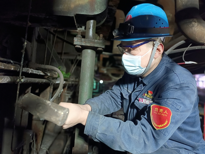 拉矫机旁,有三名维修人员正在对拉矫机起吊进行检查,两人配合挂链条,一人指挥天车,不一会儿一台拉矫机被吊起,在更换新的拉矫机前必须对水管和油管进行检查,这时,两名维修工早已钻到拉矫机下,他们正弯着腰半蹲着检查拉矫机水管 太阳成集团tyc33455,油管,只见田凯半蹲着一手拿面罩,一手拿焊线在焊接着即将开裂的水管,作为新工的宋伟豪也毫不示弱,积极投入到此次检修工作中,凭借着初生牛犊不怕虎的韧劲接受着新“课程”,他紧跟在田凯身后,为他做好后勤保障,焊线,焊条都在他的手中变得特别“服帖”,在基坑内,阵阵焊花灿烂夺目,照亮了这个不服输的“钢铁侠”。