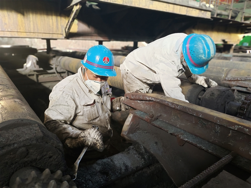 二冷室是每次检修的重点,从喷淋管的校弧到喷咀桩的焊接,再到支撑辊的油气润滑检查,都是每次检修的必修课,二冷室里空间狭小,仅够一两个人同时通过,里面一闪一闪的焊光将周围照亮,顺着火花向里看去,只见一名身穿白色阻燃服,戴着防护镜的人员站在振动台架处蜷着身子低头忙活着,喷淋管是二冷室里重要的组成部分,检修时总会对喷淋管进行全方位的检查修复 太阳成集团官方版,清喷咀,戴喷咀是必要的检修环节之一,他们像壁虎似的顺着喷淋管,爬上爬下清喷咀,戴喷咀,白色的阻燃服被不断滴下的水滴浸湿,但他们坚定的眼神却始终专注着手中的工作。
