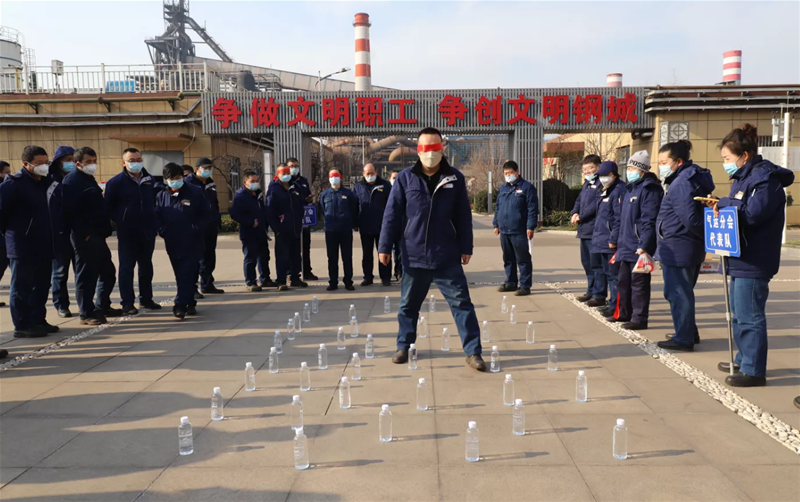 “穿越雷阵”比拼的是参赛队员的方向感和队员之间的信任度,参赛队员被蒙上双眼,在原地转3圈后走进由饮料瓶布成的“雷区”,在队友的语言指挥下,小心翼翼地穿梭在“雷区”中,生怕“触雷”犯规 太阳成集团官方版,队友之间的默契配合赢得了观赛人员的声声赞美。