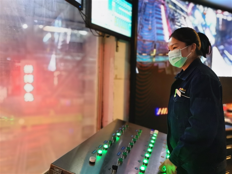 炼钢厂5号连铸机推钢室内,推钢工常海燕正在按动操作台上的按钮,一根根火红的钢坯通过台下辊道,然后在快速重载辊道上飞速前进 太阳集团手机版,自直轧项目投运以来,推钢工们每班都要打起十二分的精神,她们需要眼观六路,耳听八方,电子屏上显示的轧钢要钢信息,钢坯温度合格率,钢坯支数等信息要随时盯紧;钢坯输送辊道,推钢机,挡板的操作及记录的书写,必须准确无误,这对推钢工们来说都是不小的考验,她们用细心,耐心,恒心完成每一次任务。