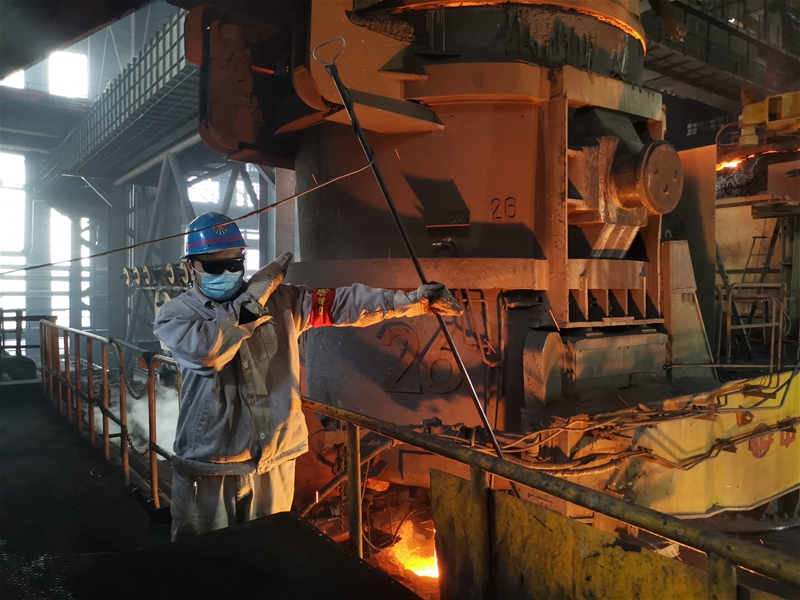 走进炼钢厂连铸生产现场,火热的场景映入眼帘,爬上大包浇钢平台,火红的钢水映红了厂房,阵阵热浪迎面扑来,大包是连铸作业的关键 太阳成集团官方版,钢水温度的偏差直接影响整个浇铸流程的变化,只见大包工拿起测温枪,然后稳稳地扎进大包内,随即转过头,用厚手套将面部挡住,钢花顺着测温枪的方向飞溅过去,然后散落一地,“黑脸蛋”是大包工最贴切的形象,每天8小时的坚守,他们与火红的钢水,炙热的高温相伴,测温,戴卸油缸,排渣……这些繁重的工作,是他们每天的“必修课”。