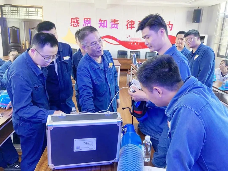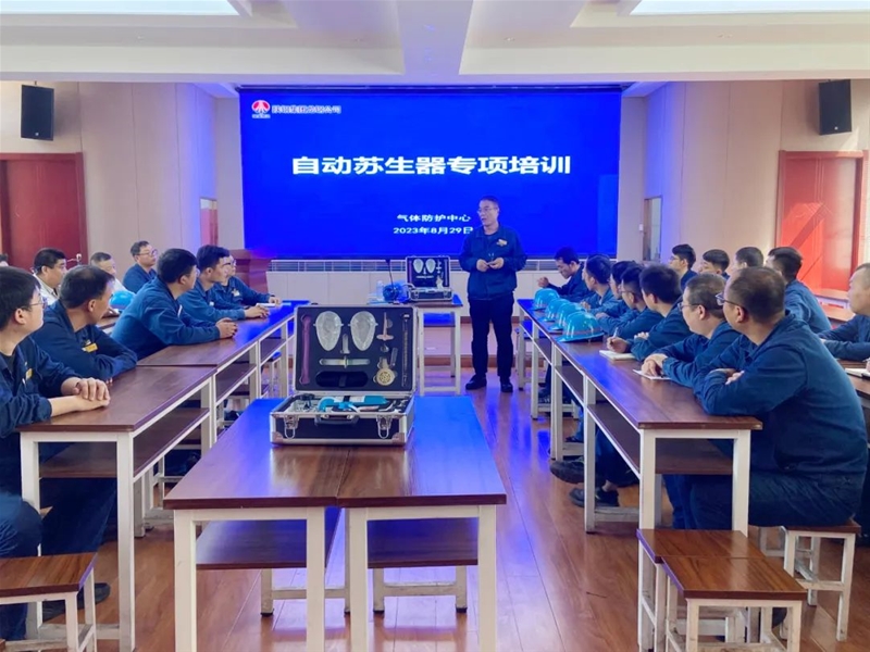 8月29日 太阳集团下载,公司气体防护中心在水处理中心会议室组织开展自动苏生器使用操作培训,公司各单位应急队员参加。