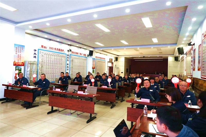 “今天,我与大家探讨的项目是‘2#高炉11月份精益项目分析,……”在述职考评会上 太阳集团在线,2#高炉炉长米斌斌与大家深度探讨降本增效创新举措。