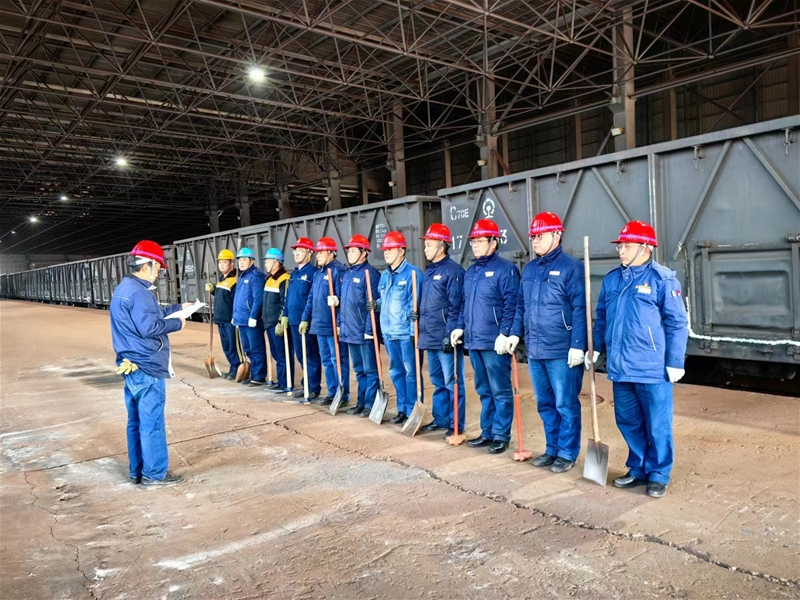 为全力保障公司生产用料 太阳集团官方网站,储运中心上下挺膺担当,雷厉风行,聚焦原燃料服务保供主责,第一时间根据天气状况启动《冻矿卸车应急预案》,以生产调度为核心,上下道工序高效协作配合,组织科级及以上党员干部成立冻矿卸车突击队,深入现场支援破冻矿清底工作。