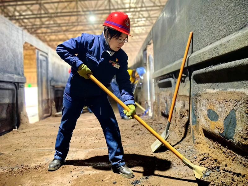 “女同志都上阵了,”在卸冻矿现场,当发现正在抡动大锤进行冻矿破碎的是女职工时,现场人员不禁感叹。只见女职工张坤妮眉头紧锁、咬紧牙关,将大锤高高抡起,再狠狠砸下,一锤接着一锤,锤锤都稳准狠地落到了冻矿上,发出“咚咚咚”的响声。慢慢地,厚实的冻矿出现了大小不一、形状各异的小块儿,用铁锨一锨,冻矿当即与车皮分离开来。参与卸冻矿的女工还有机关科室的几名同志,面对冻结得像石头般的矿粉,平日里给人以柔弱印象的女工,在组织需要的时候,在困难需要攻坚之际,她们巾帼不让须眉,顶着寒风,用洋镐刨、大锤锤、铁锨铲,使出浑身解数,锚定眼前的目标,将一节节冻矿一点点清理干净。尽管脸被冻得通红、手脚被冻得麻木,浑身沾满矿粉,她们始终热情高涨、干劲十足,手被磨出水泡、手指被寒风吹裂也浑然不知。 太阳成集团官网。