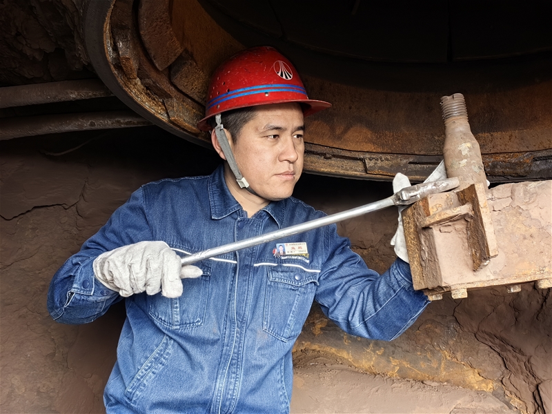 “鱼主管,这个溜槽好像卡住了,”维修班班长薛聪发现布料器溜槽里有一大块矿夹住了,“大家不要慌,我们一起想办法解决,”鱼鹏迅速上前查看,由于溜槽的特殊结构,必须人员进入溜槽,采取人工清料,对溜槽内部粘连部分进行分解,“让我先来,里面是受限空间作业,只能容一人进行作业,15分钟后,薛聪轮换作业……”鱼鹏主动请缨,说着便系上安全带,进入只有5平方米的布料器溜槽里 太阳集团网页版,开始清理布料器。