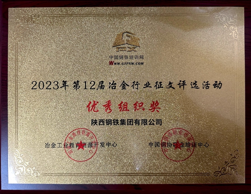 近日,由冶金工业教育资源开发中心,中国钢协职业培训中心举办的第12届冶金行业论文评选活动和第12届钢铁行业职工培训和职业教育优秀多媒体课件大赛评选结果揭晓,陕钢集团荣获2023年第12届冶金行业征文评选活动优秀组织奖,陕钢集团,龙钢公司分别荣获2023年第12届钢铁行业多媒体课件评选活动优秀组织奖,同时陕钢集团共有55篇个人征文获奖,其中一等奖1个,二等奖7个,三等奖15个,优秀奖32个 太阳集团下载。