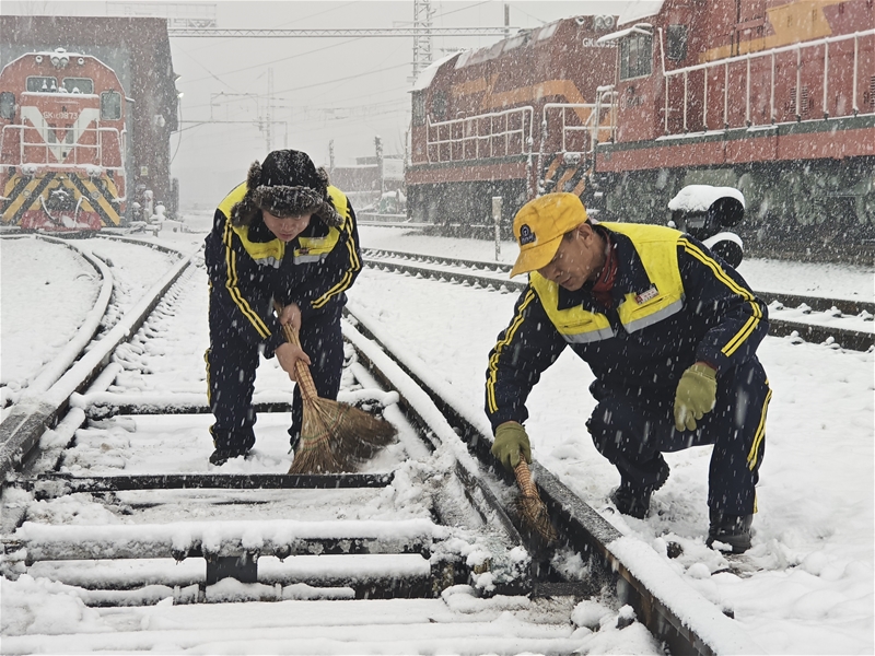 为保障交通运行顺畅,公司第一时间启动应急预案,在各主要路段,铲车正在进行铲雪清雪作业,干部职工们纷纷行动,对人行道,路边以及楼梯等区域积雪进行清扫,全员上下通力合作,共筑安全大堤 太阳集团平台。