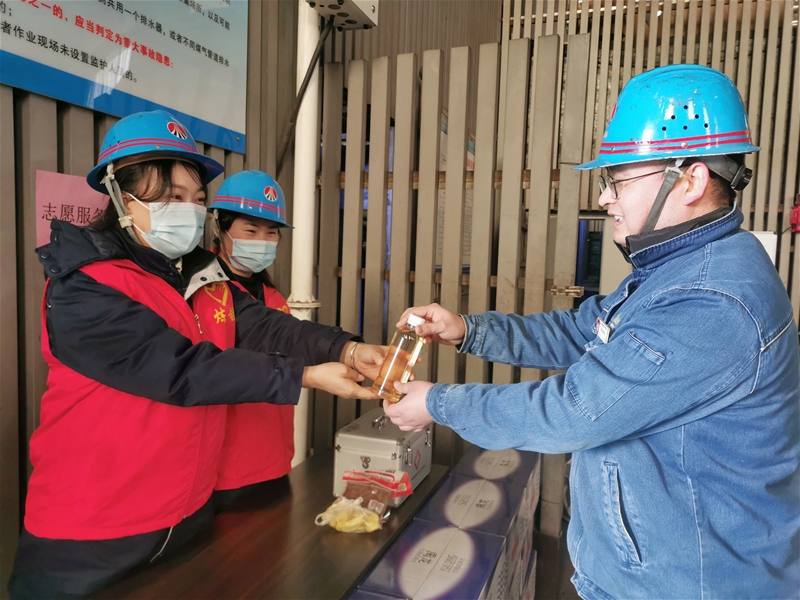 “热腾腾的姜糖水,喝点暖暖身。”该单位分别在炉台、炉顶及热风炉区域设立志愿服务站,精心为参检人员熬制“暖心姜糖水”,为检修做好后勤保障。