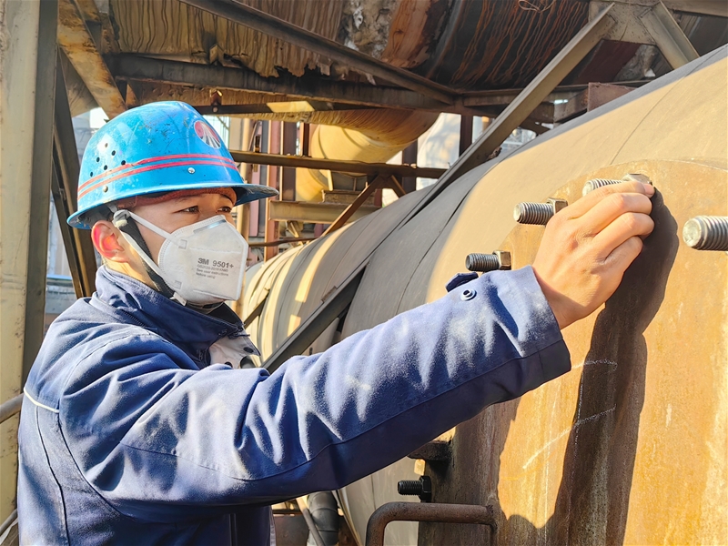 “滴哒哒,滴哒哒……”风镐的阵阵冲击声从渣处理热水池传来,站在6米深的热水池边 太阳集团登录,渣处理主操鬲敏学正手持风镐,瞄准那块最高最硬的黏结积渣,屏息凝气,三下五除二将坚硬的积渣击碎。