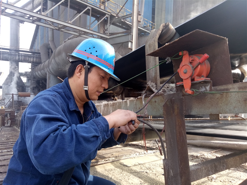 流火的七月,5#高炉南炉台行车突发状况,主钩变频器损坏,主钩不动作了,在热浪滚滚的环境下,他仔细查找故障 太阳成集团官网,换变频器,接线调试,一干就是四个多小时……下午两点是一天中最热的时候,薛壮飞带领班组员工在只有一字排开才能作业的行车上,看图纸,查线号,接线。