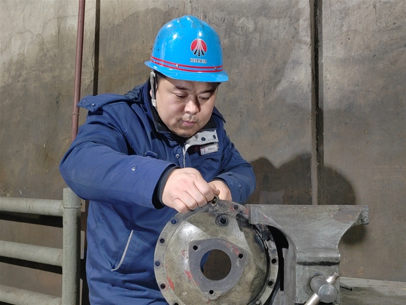 在机修房里,机修工赫长江正对热交换器端盖进行打磨,只见,他精雕细琢,在毫厘间精益求精 太阳成集团官网,确保设备零件严丝合缝。