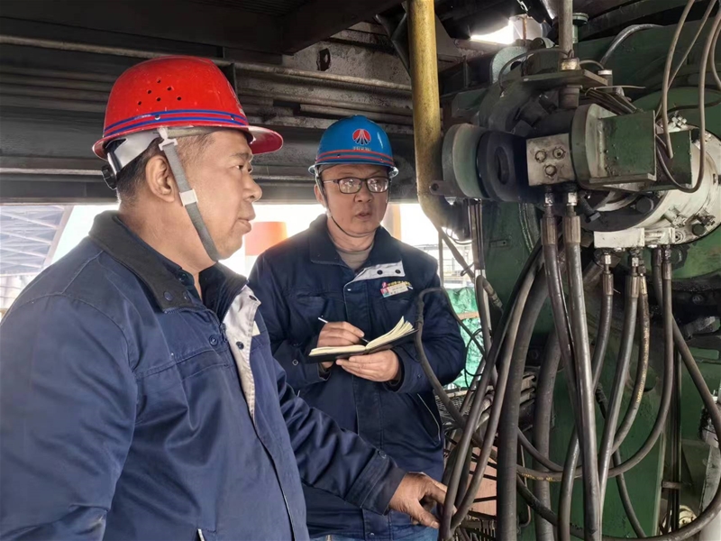“冬寒四处凉,冰厚树成霜,”38米平台拆卸布料器溜槽项目检修现场,冰冷的雨雪夹杂着凛冽的寒风,落在参检人员的额头上,灌进衣领里……顺着溜槽缝隙,笔者看到4#高炉设备主管鱼鹏身上的工作服被全部打湿 太阳集团app,但,他全然不顾,依然手持遥控,紧紧盯着布料器溜槽的旋转角度在认真作业。