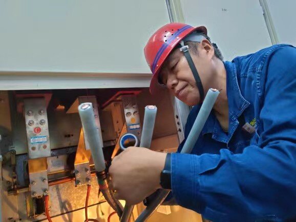 剥半导电层,准确安装电缆护套,用砂纸打磨电缆终端头……制作电缆头每一个步骤都是力气活和精细活,检修人员的额头上不时渗出一层汗珠,但他们顾不上擦去汗水 太阳集团app,耐心细致配合着,操作着,因为作业空间狭小,检修人员只能倾斜身躯,蜷缩在开关柜旁,手持工器具艰难地将电缆头固定接引在开关柜内,进一步强健电网筋骨,为电网迎峰度夏奠定坚实基础。