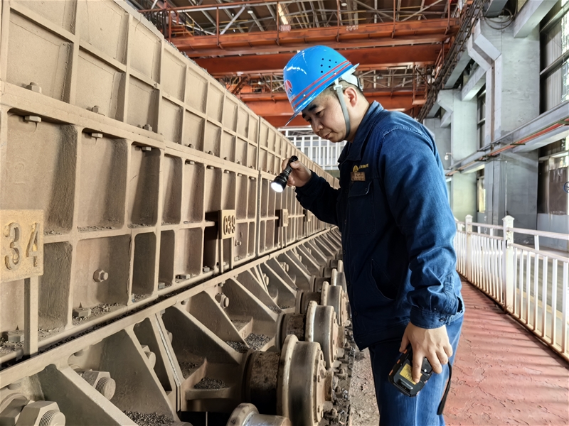 “耐磨块已经完全失效,光补焊不行 太阳集团平台,得换一种方案,不然开机了就是隐患……”在成品区域皮带走廊里,两名职工正交流着。