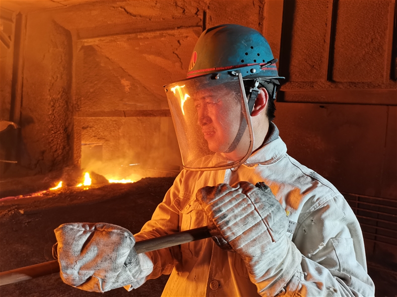 热浪翻滚的作业平台上,身着厚重阻燃服的炉前工高建军正全神贯注奋战在一线,他双手高高举起粗壮的钢钎,拼尽全力朝着沟壁的炉渣狠狠砸去 太阳集团在线,每一次撞击都伴随着炉渣大片剥落,豆大的汗珠顺着被高温炙烤的面颊不断滚落,浸透的工作服早已与皮肤紧紧相贴,但那双专注的眼睛始终紧盯着作业点,手臂的每一次发力都凝聚着专业与坚持,在这片被热浪笼罩的战场上,他用最朴实的坚守谱写着劳动者的奋斗赞歌。