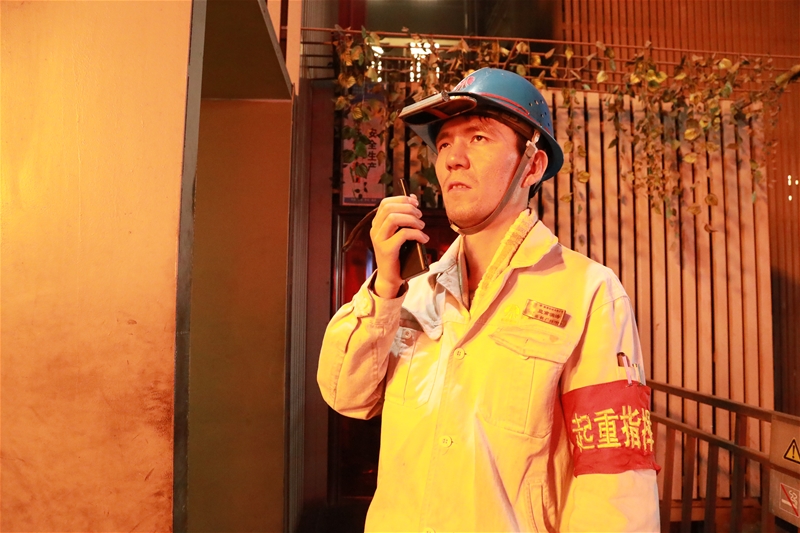 在炼钢工序生产现场,天车来回穿梭,加废钢,兑铁水,炉前工们有的指挥天车,有的测温取样,有的忙着炉后出钢 太阳成集团tyc33455,跳动的炉火把整个平台照得通红,身穿白色阻燃服的炉前工,在溅渣的间隙,迅速清理挡火门轨道上的热渣,滚烫的热浪扑面而来,汗珠顺着脸颊不断滑落,他们却顾不上擦拭。
