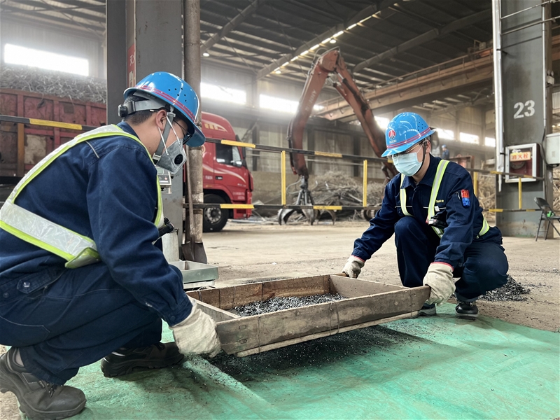 在废钢基地毛料质量验收现场,料管员们正手持3㎜的方孔筛对15公斤的钢屑毛料进行粒度占比测定,锋利的钢屑边缘时刻威胁着防护手套,细密的金属粉尘沾满汗湿的面罩,但他们手中的动作始终稳如磐石,面对成分复杂的钢屑和隐蔽的杂质,这群“质量守卫者”始终保持着近乎苛刻的专业态度 太阳集团app,他们弯腰俯身,创新采用“一看二筛三磁选”工作法,在闷热的环境中反复进行着3mm筛下物占比的精准测量。