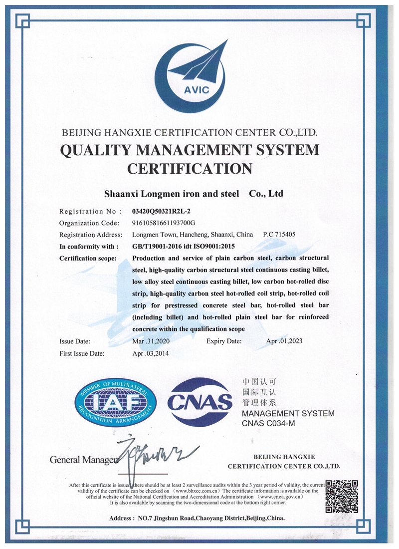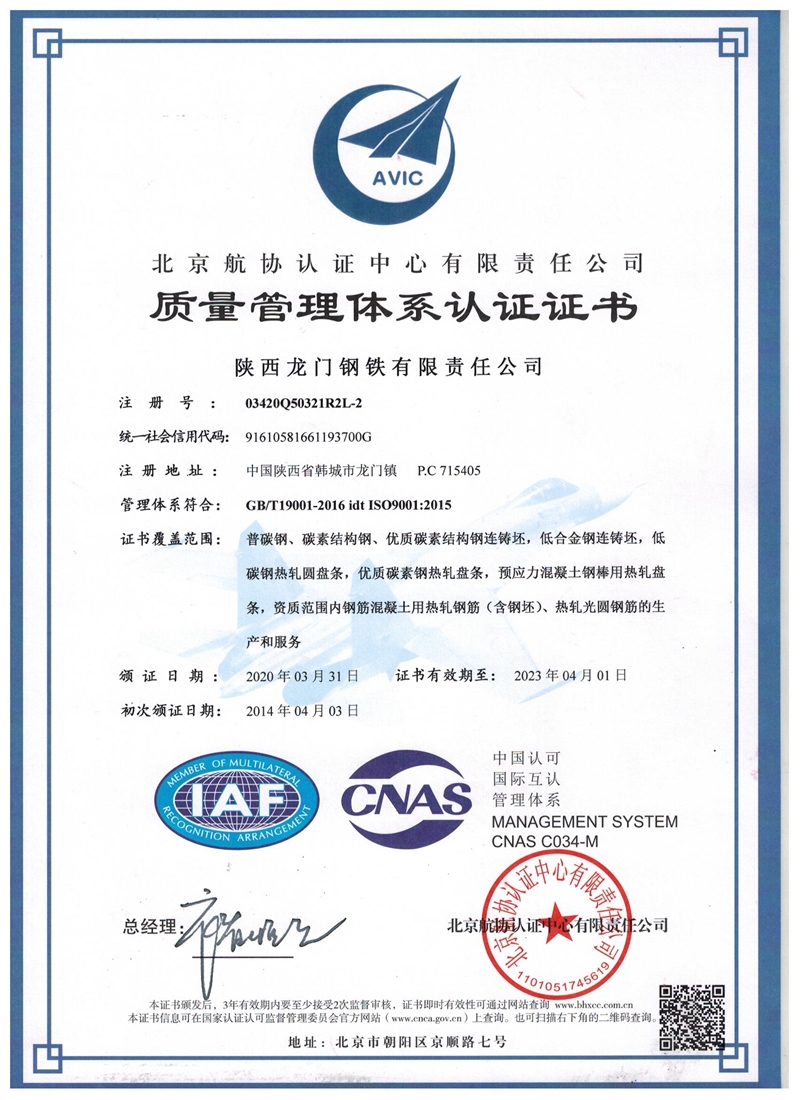 公司自1985年开始宣贯全面质量管理,1999年通过了ISO9001:1994质量管理体系认证, 2011年公司成功实施了质量,职业健康安全,环境管理体系一体化整合,建立了完善的质量管理体系文件,编制了一体化《管理手册》及通用,专业程序文件,编制了《烧结厂工艺操作规程》,《炼铁厂工艺操作规程》,《炼钢厂工艺操作规程》 太阳集团下载,《轧钢厂工艺操作规程》,《检验和试验规定》,《理化检验操作规程》等一系列操作规程及各类作业文件,实现了从原料进厂到产品出厂全过程质量管控,在“坚持科学协调发展,提升绩效持续改进;遵守法规控制风险,节能减排绿色低碳;打造“禹龙”百年品牌,不断增强顾客满意”的一体化管理方针框架下,制定了切实可行的质量目标,确保了体系持续运行的适宜性和有效性。