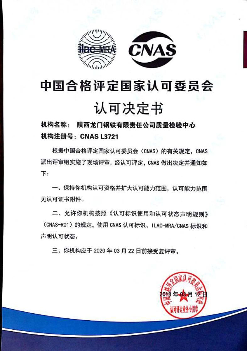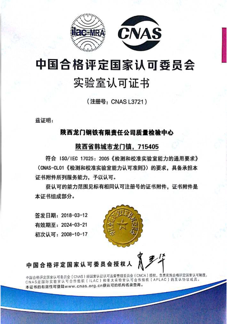 龙钢公司能源检计量中心质量检验中心拥有进口X-荧光仪,真空直读光谱仪,红外碳硫仪,全自动工业分析仪,热反应测定仪,煤质岩相仪,电液伺服万能试验机,钢筋弯曲和反弯试验机,维氏硬度计,金相显微镜,扫描电镜,氧氮氢仪等质量控制检验检测设备,整体装备水平处于国内领先地位,2008年,公司质量检验中心获得国家实验室认可证书 太阳集团下载,并连年通过国家认可审核及标准能力检测验证。