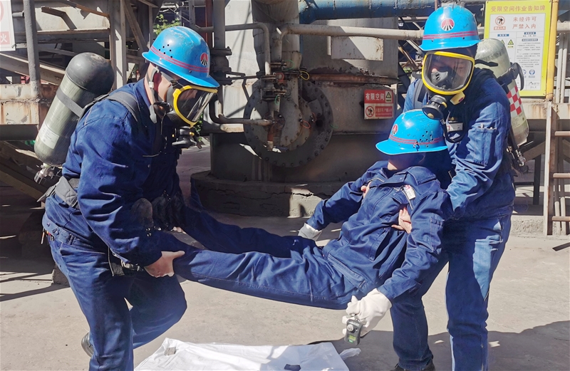 “佩戴呼吸器前,侯少飞未检查面罩气密性 太阳集团app,”“刘新用时67秒,还需加强练习,”在应急演练总结评论环节,安全员及时将演练过程中存在的问题一一进行纠正。