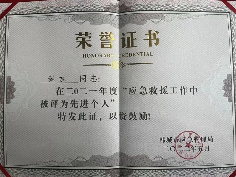 5月27日,韩城市应急管理系统先进集体和先进工作者表彰大会在韩城市应急管理局举行,龙钢公司应急救援队获得“韩城市2021年度应急救援队伍先进单位”,并现场授予“市级应急救援队伍”奖牌,公司气体防护中心副主任张飞被授予“韩城市2021年度应急救援工作先进个人”称号 太阳集团下载。