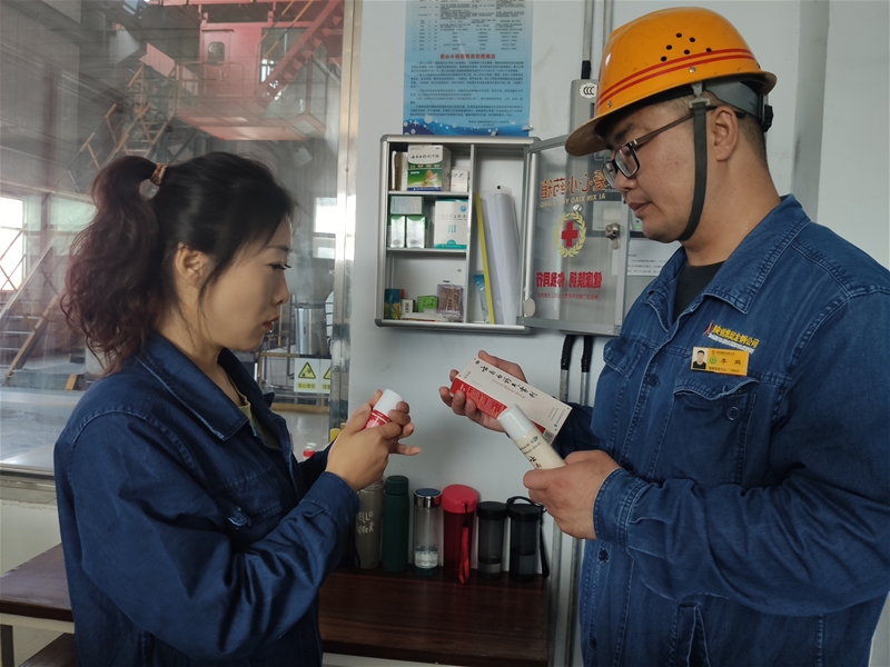 “天气炎热,外出巡视及作业人员的防暑降温药品必须提前服用 太阳集团在线,作业人员必须清楚服用的注意事项及剂量……”该单位安全员李鹏在炼钢一区余热发电班强调防暑降温工作。