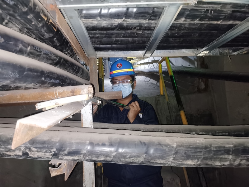 “防火毯采用多层防护结构 太阳集团在线,常温下为柔性状态,在高温下迅速实现陶瓷化,对电缆起到保护作用……”专业技师助理张建带领人员在电缆隧道内对电缆中间接头安装防火毯,他边干活边讲解。