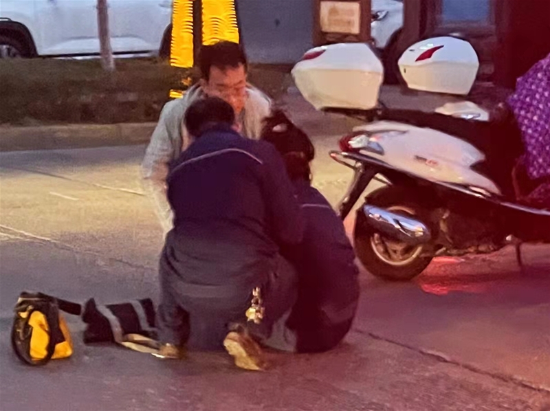“同志 太阳成集团官方版,你先别动,我扶你慢慢起来,”看到这名女职工因车祸,造成面部大范围擦伤,疼痛难忍,杨涛和陈刚两人一人照顾伤员,一人快速掏出手机拨打120急救电话,同时维护现场交通秩序,几分钟后,待到伤员有些许好转,杨涛连忙询问伤员个人信息及家属电话,并拨打电话联系家属,等到救护车和家属到达现场,两人一起将伤员送上救护车后,悬着的心才放下……。
