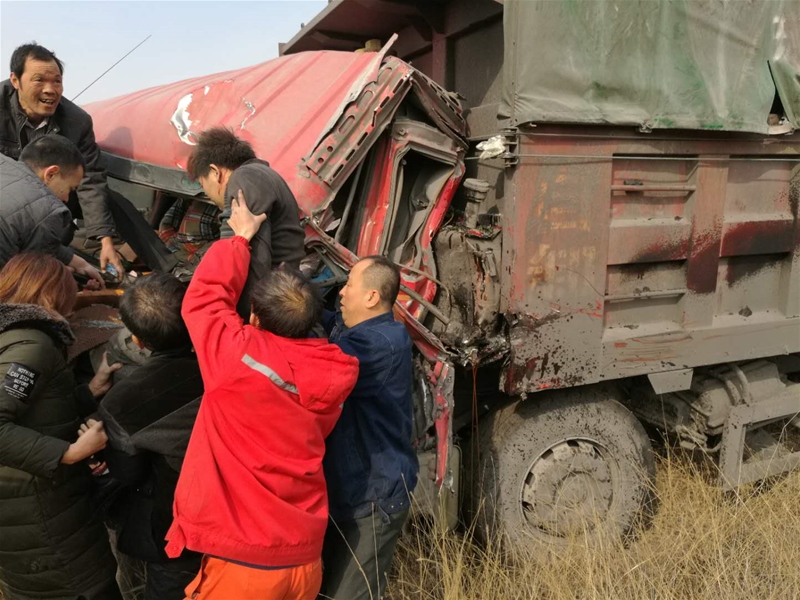 2017年11月的一天,他和同事出差前往山西省河津市对高钙灰进行市场调研。返回途中,他发现两辆车因交通事故导致司机被挤压在驾驶室内,一人已经昏迷,另一人双腿无法动弹,头部正在流血。他当机立断,喊了一嗓子“停车,赶快帮忙救人!”