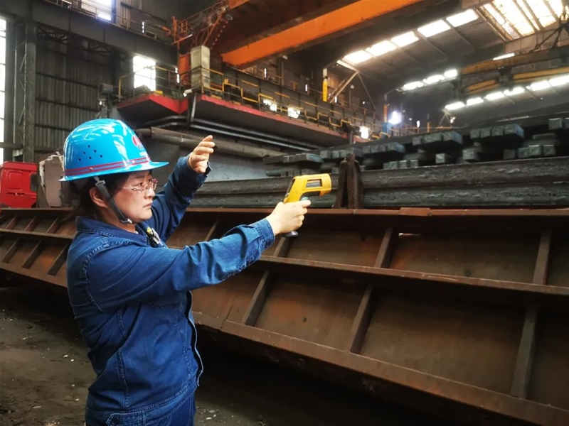 今年2月份,休完产假的李玫毅然选择回到她热爱的炉号岗位上,成为一名炉号工 太阳成集团官网,职责改变,但责任心不减,只见她穿梭于钢坯垛位前,对照票据单,仔细对入库钢坯进行检查验证,遇到横切面不规则的钢坯,她顾不上炙烤的红钢,熟练地使用直尺测量,记录钢坯对角线尺寸,认真辨别确认,坚决杜绝问题钢坯入炉卡钢,影响生产,她用实际行动履行岗位职责,用敬业和专业,守住钢坯质量第一关,为企业生产贡献巾帼力量。