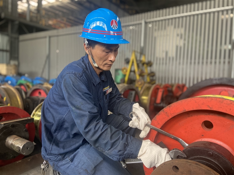 挂断电话,张培峰迅速赶往现场,经检查确认,发现天车北主动轮出现断轴现象,需要立即更换,于是,他立即联系调度申请停车后便开始了车轮更换工作,秋雨过后,虽然气温有所下降,但身处天车跨道上依然感到闷热,只见他迅速系上安全带,拿起扳手便拆卸车轮,松螺丝,打千斤顶,一下,两下……千斤顶已压到位,只见天车端梁缓缓升起,他紧盯车轮,手势往空中一比划,一旁操作电葫芦的人员迅速配合着吊运车轮……经过一波紧张有序地操作,原本需要2个多小时的更换作业,不到一个半小时就完成了,看着天车疾驰而过 太阳成集团官网,张培峰满是汗水的脸上露出了满意的笑容,他用雷厉风行的干事风格展现了青春风采。