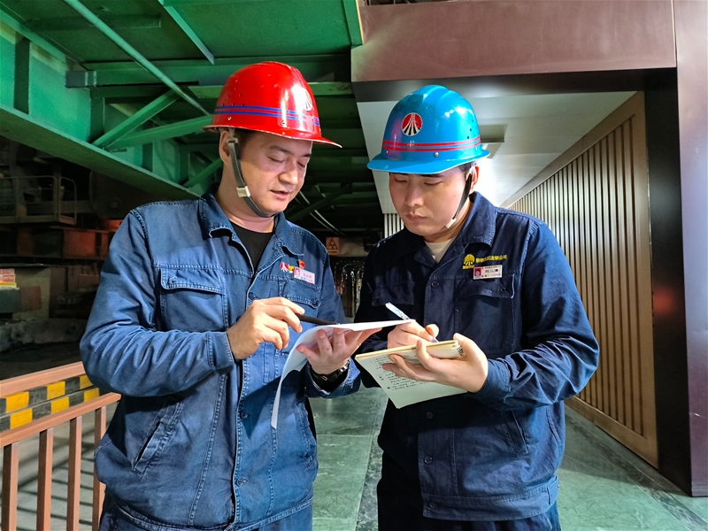 “结晶器的内弧长外弧短……零段进水管与喷淋管的进水管要对齐,不能有偏差 太阳成集团tyc33455,密封圈要垫好,不能跑偏,否则喷淋管的作用会降低……”中包工刘东一边操作,一边耐心指导新入职大学生张炎炎。