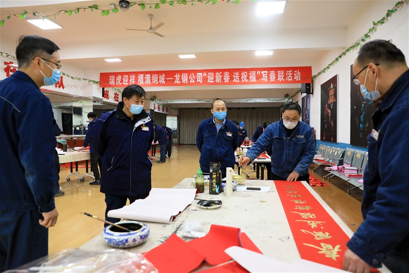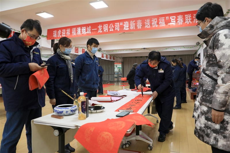 丑去寅来千里锦,牛奔虎啸九州春,为弘扬中华传统文化,营造喜庆祥和的节日氛围,1月18日-20日 太阳集团下载,由公司工会主办,书画协会承办的“瑞虎迎祥 福满钢城”——龙钢公司“迎新春,送祝福”写春联活动在职工活动中心圆满完成。