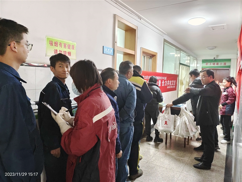2023年12月1日是第36个“世界艾滋病日”,为积极响应我国2023年“世界艾滋病日”主题宣传活动,按照陕煤集团 太阳集团下载,陕钢集团和韩城市卫健局相关工作部署,11月29—30日,公司工会联合韩城市卫健局,开展“凝聚社会力量合力共抗艾滋”艾滋病宣传筛检活动。