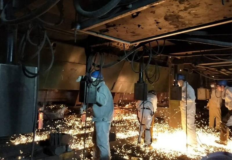 最后一站是摄影记者们向往已久的炼钢,走进炼钢新区,“打造中国最具竞争力的高端钢铁材料服务商 太阳成集团官网,建成美丽幸福新陕钢”的巨幅宣传牌不禁让人精神一振,当走过炉前的“文化长廊”后,加废钢的斗子悬在转炉上空,操作室内,炉长张社宁仔细地观察着各个下料成分,重量的数字变化,看到我们来热情地打招呼,来到连铸机平台,一名炉前工喊着“让一下,小心烫”,一边用厚厚的白手套挑着钢钎,经询问原来是刚换下来的中包结晶器套管,中包工们一字排开站立在中包各流口前,操作着中包拉钢设备,看着火红的钢水听话地流进结晶器口,前边是钢水的炙烤,后边吹风机呼呼地吹着,铁打的人也会因为8小时的长时间站立而困乏颤抖,他们的毅力难以想象,“炉内炼钢,炉外练人”的传说真是再现了这种情景。