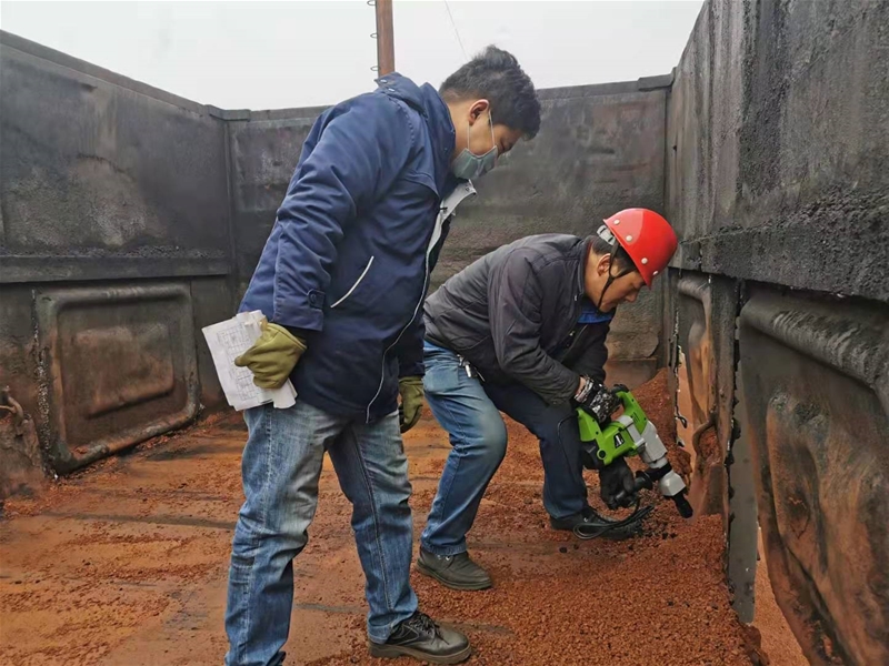 “上工具,天气这么冷,光靠人是不行的,”装卸工边说边拿着大锤在车皮上敲起来,受到震击后 太阳成集团官方版,车门处粘连的矿纷纷落下,可是四个角落的矿却仍然纹丝不动,“再试试电铲子,”“钻它,”不一会儿,新的设备就派上了用场,结块的矿变成粉状,效果显现了出来。