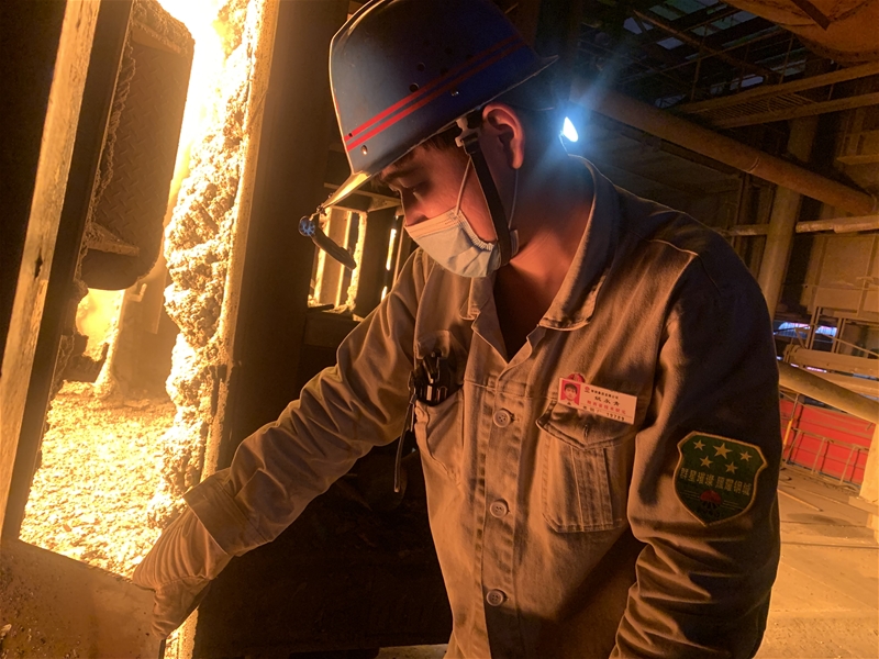 深冬的气温低至零下,停炉后现场的温度慢慢降低,郭少博一直站在炉口处理故障,头上的汗珠穿过安全帽的“阻挡”,顺着额头、脸颊滑落,他顾不上擦去汗水,任凭汗水涩了双眼,他眨眨眼睛,试图将汗水挤出眼眶。
