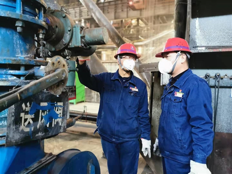 “刘二博刚干技术员,很多工作还不是很了解 太阳成集团tyc33455,大家要多给他指导,”作业区例会上,贺海伟要求作业区管理干部对刚干技术员的刘二博多关照,多指导,“严格满包浇注,中包温度控制在1520-1530℃之间……为中包寿命提升创造条件,”会议后,贺海伟又带着刘二博来到6#连铸机,他针对中包寿命提升这一课题,正在进行现场授课,此时,浇钢区轰隆隆的设备声让贺海伟的声音越来越大,钢水在中包内翻涌着,火红的钢水透过厚厚的中包套管映红了浇钢区,也映红了他们的脸颊,贺海伟不被外界因素干扰,眼神里透着满满的坚毅,一旁的刘二博认真地听着,心里暖暖的。