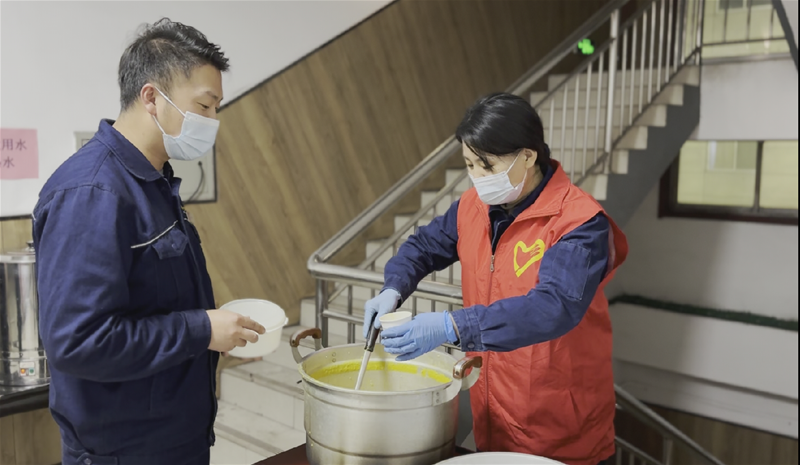 原来,化验工吴岁妮在上夜班期间 太阳成集团官网,看到大家为了安排疫情防控工作,加班加点,滴水未进,于是下班回到生活区的家中,与家人一起洗菜,切菜,煮粥,精心为大家做了南瓜小米粥,馒头,小菜等“爱心餐”,并在第一时间送到岗位上,给连续奋战的岗位工作人员。