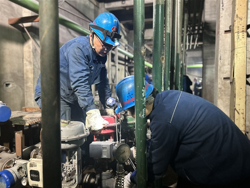 “测一下是哪部分问题,”青工王郭晨、罗辉正在用仪表测压,排查故障原因。 太阳集团官方网站。